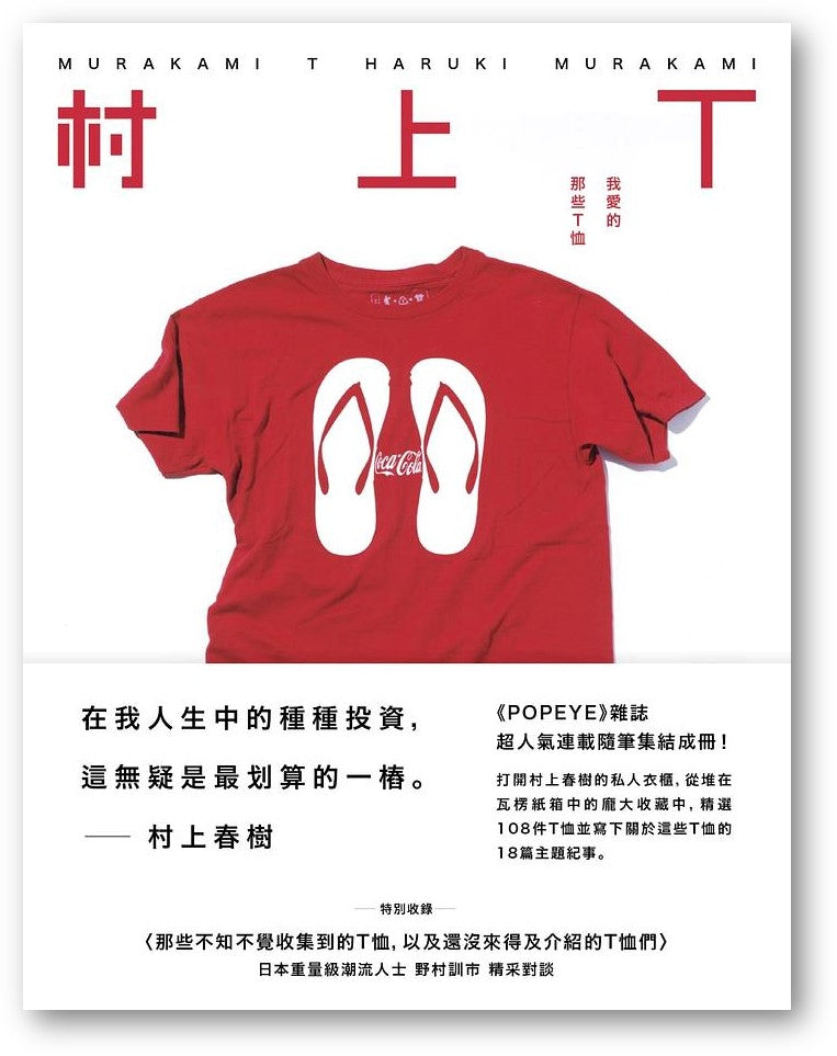 T恤這起初看似難登大雅之堂的貼身衣著,其實是在二戰之後才拜詹姆斯狄恩、馬龍白蘭度這些當時冷酷叛逆的螢幕偶像之賜,由大兵們的內衣搖身一變為具有時尚感的外出服。演變至今,T恤不僅僅是服飾,更代表了一種生活態度。村上曾在訪談中說道:「T恤對我來說象徵自由。」畢竟,對於除了「不得不穿西裝的時候」(《村上收音機2》),最常穿著短褲白球鞋的他,還是只有T恤和隨興作息的作家生活最合拍了吧。
