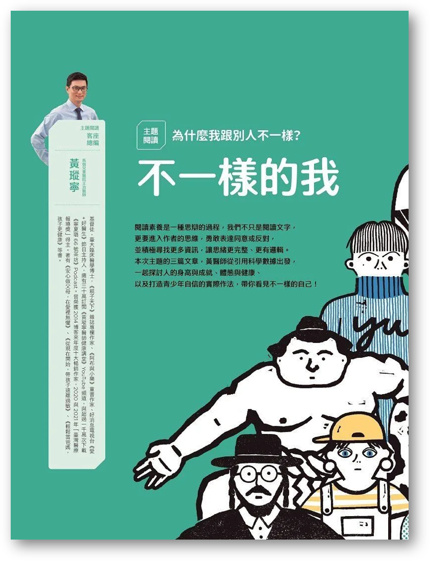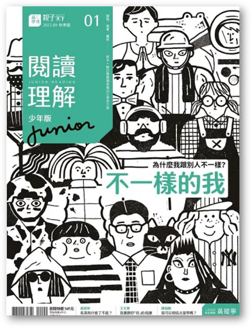 每一期的《閱讀理解junior》主題閱讀皆以「真實問題的探究與實作」為核心設計概念,從提問出發,由各領域客座總編帶領孩子深入探究歷程。創刊9月號《閱讀理解junior》以「不一樣的我」為主題,由客座總編黃瑽寧領軍,從「為什麼我和別人不一樣?」的叩問為起點,了解每一個人是如何認識自己、外表與自信的關係、是否能與眾不同?用星座來了解自己可信嗎?等,橫跨人文、心理、社會、科學研究等面向的文章。首刊更邀請到知名作家黃春明、國際NGO組織工作者褚士瑩、知名作家王文華、心理學作家海苔熊等撰文,搭配主題探究任務及閱讀素養題組,透過多元跨文章,開啟跨域與跨科的探索旅程,培養閱讀理解及素養力。